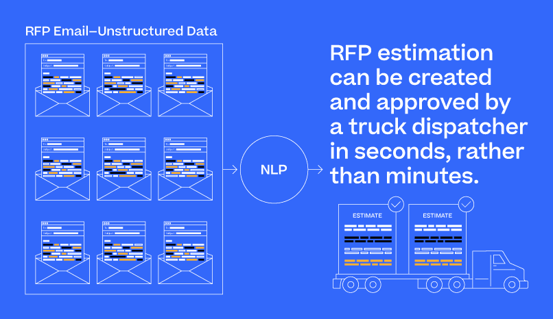 Alliance needed to be able to feed emails directly into an NLP model that could understand RFQs and produce precise estimation criteria. The estimates would then be loaded into their software to be approved and executed. To build an NLP model for the trucking industry, they first needed to build a high quality dataset of job estimates from which their custom model could learn.