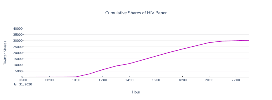 Within four hours, the paper had been shared over 200 times on Twitter and before the day was over, it had been shared over 30K times.