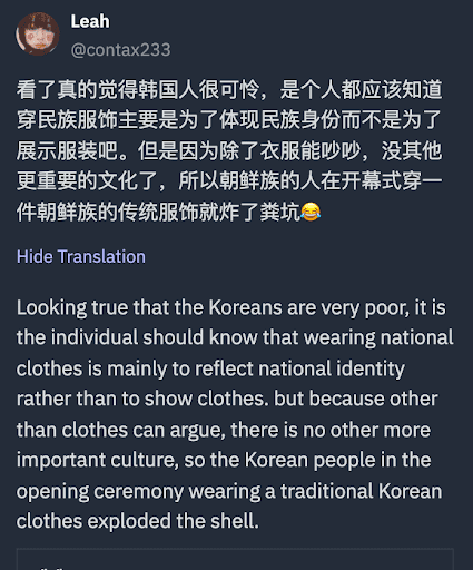 Learning what is being conveyed to the local population will be more important during the Beijing games given the limited movements allowed for foreign media outlets. Additionally, it will give security teams early indicators of unrest. This filter can also illuminate posts by local nationals - automatically translated - expressing concern about physical security threats.