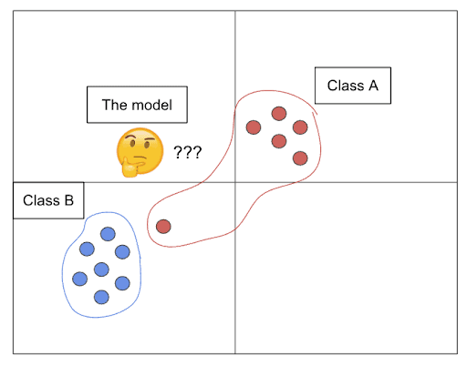 Let’s say you’re doing a classification between two classes, Class A and B. When your model sees an example that clearly looks like Class B, and instead it’s labeled Class A, it now has to adjust its idea of what Class A looks like to accommodate this weird Class-B-like example, which is likely an outlier relative to the other Class A data points. If this happens too many times, it can distort the model’s overall understanding of the task, causing it to underperform on both Class A and Class B.
